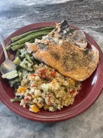 Pic is just a big hunk of salmon. I didn't take pic of other stuff. Just dug in. Was starving!